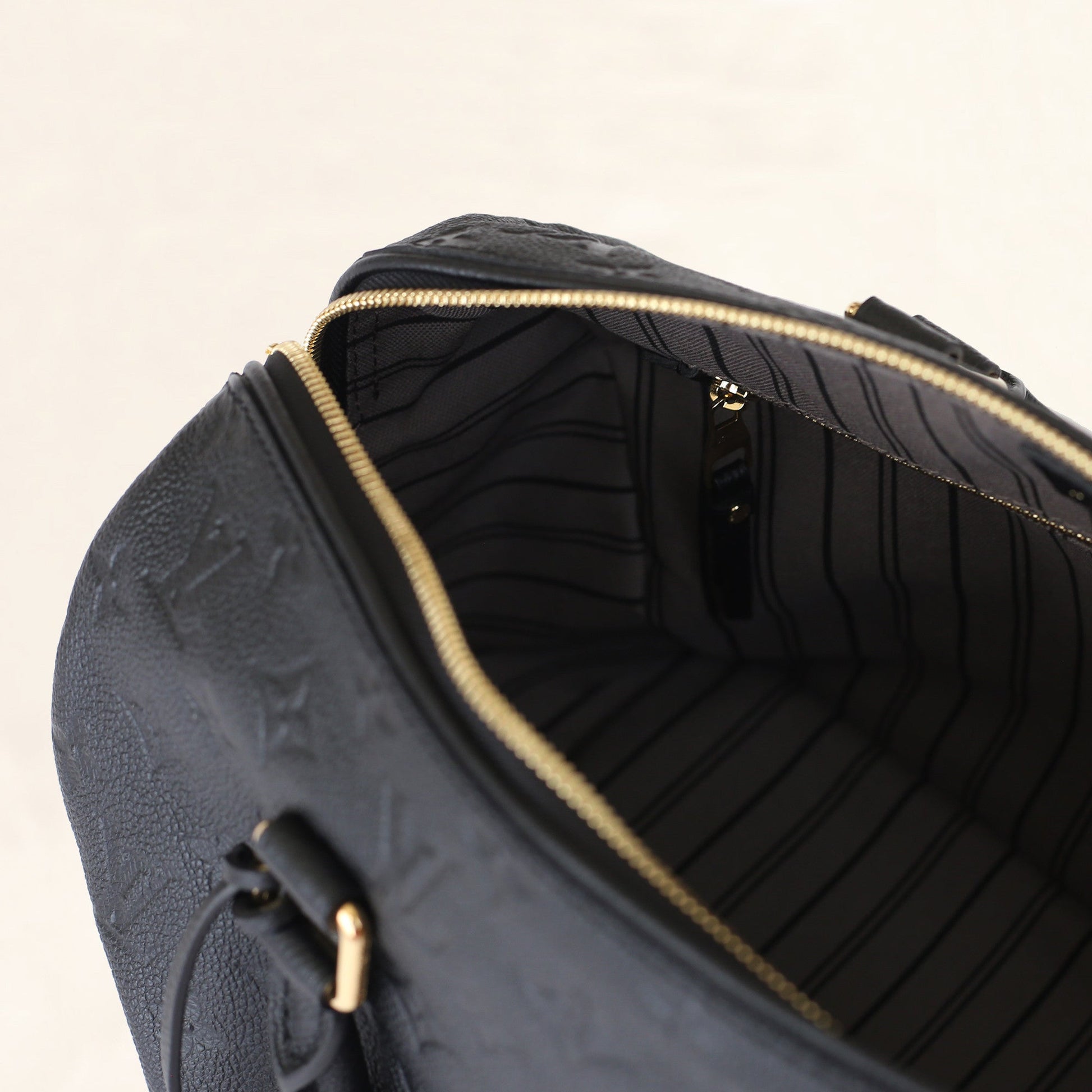 Why Itâs An Investment: Every feature of this Speedy is iconic. Designed for travellers in 1930, with a strap for shoulder and/or cross-body wear, todayâs Speedy 30 is a perfect bag. This new reading of a House icon, crafted of embossed Empreinte leather, is a timelessly elegant bag for the fashionable woman. It’s a timeless piece that represents everything Louis Vuitton stands for: quality, thoughtful design and unparalleled craftsmanship to last forever.