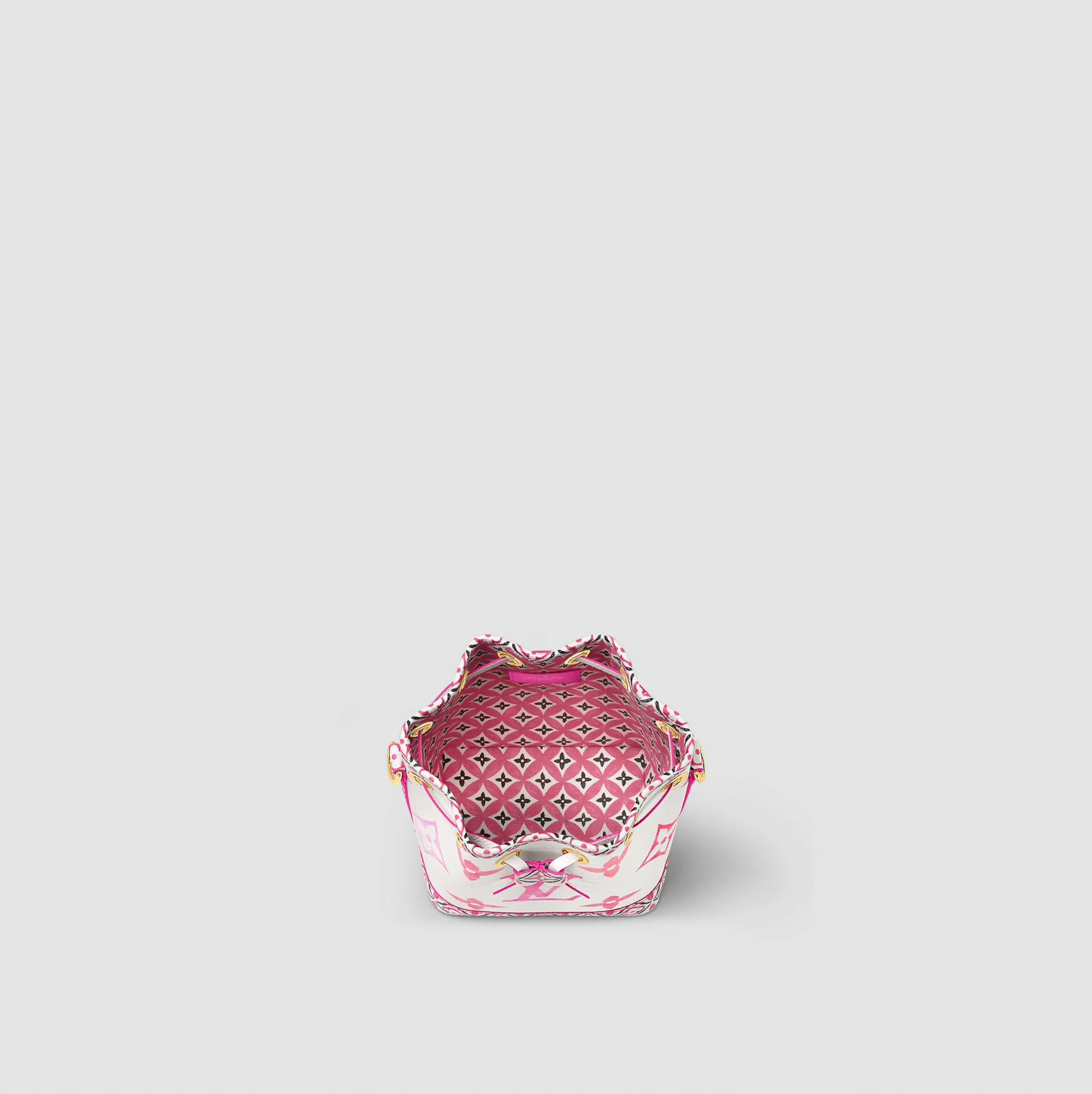 Characteristics: This edition of the Nano Noé belongs to the seasonal Resort collection. It comes in coated canvas printed with an oversized Monogram pattern in soft, summery tones, and features coordinating trim and lining. A miniature replica of the iconic Noé bag, it has a practical drawstring closure, a removable handle and a removable, adjustable shoulder strap.