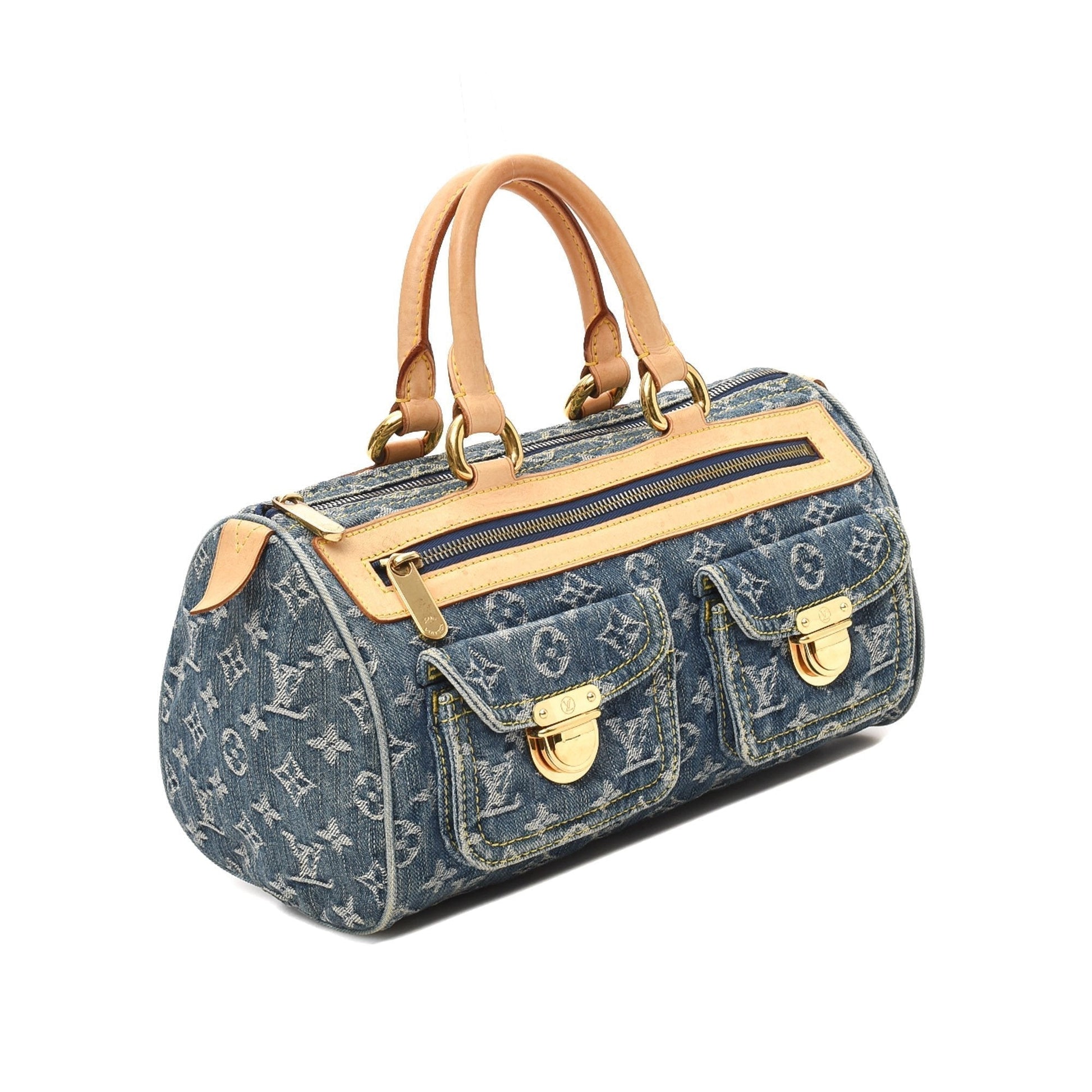 capnwrap guarantees this is an authentic vintage Louis Vuitton Neo Speedy handbag. Crafted in monogram denim denim, this refined purse comes in blue.