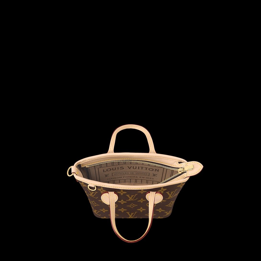This season the House?s forever favorite, the Neverfull, gets reinvented as a mini-tote: the Neverfull BB handbag. This scaled-down version features an adjustable and detachable textile strap as well as a playful coin purse attached to a D-ring. It is just the right size for small essentials like a smartphone and compact wallet.