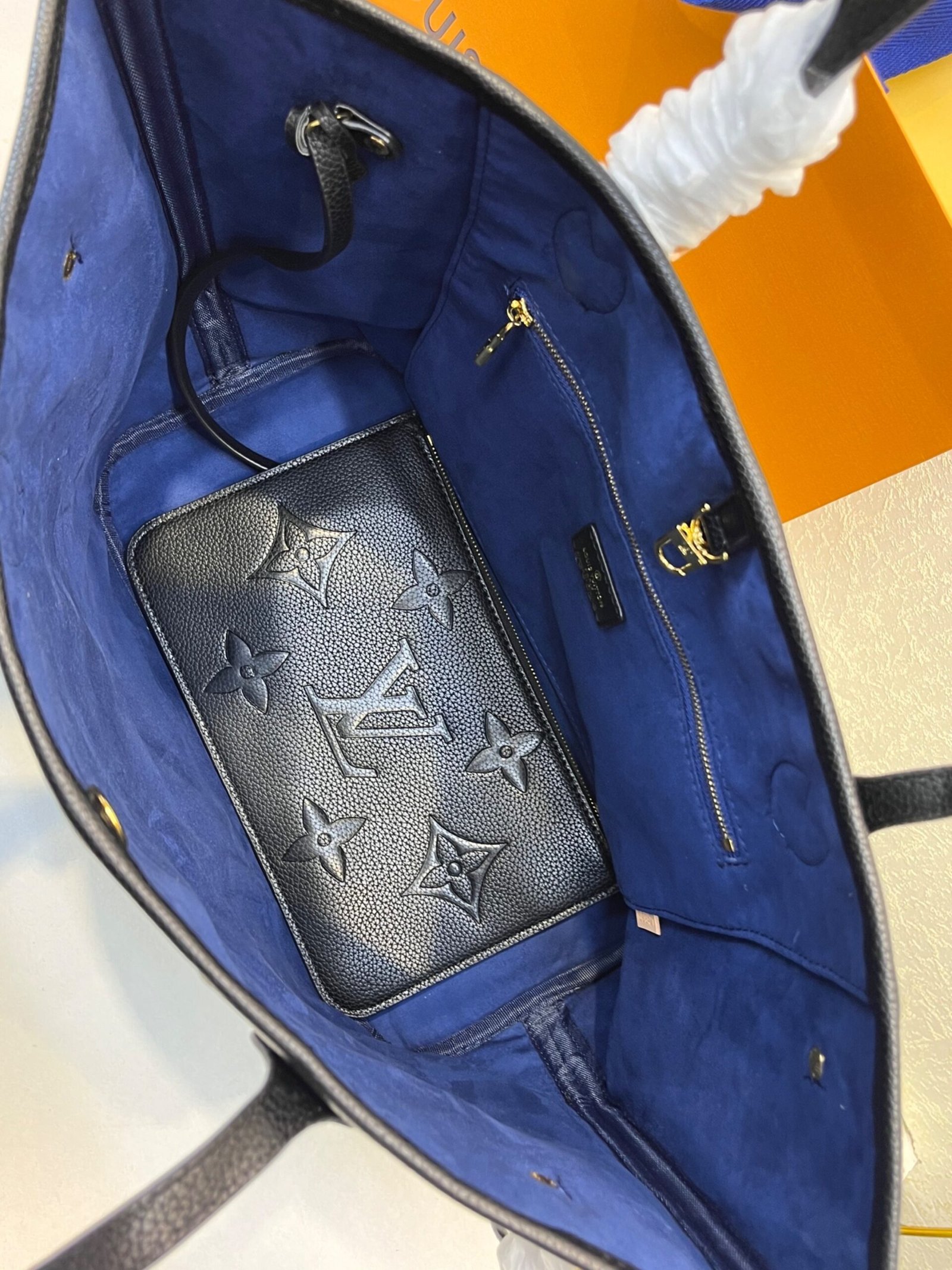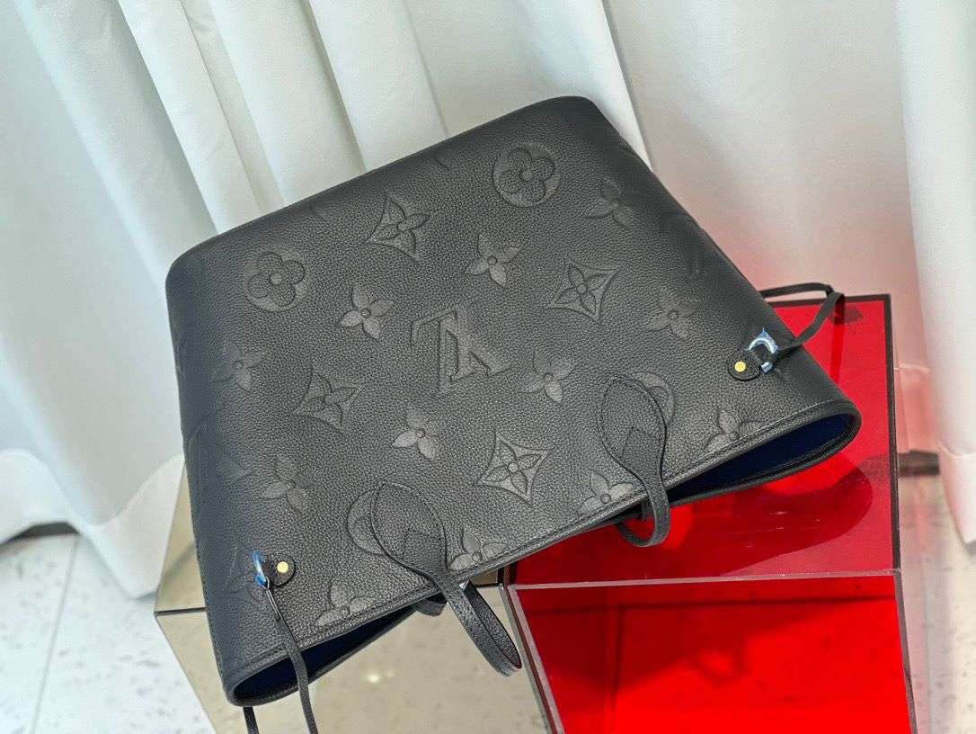 • The essential Neverfull MM tote now comes in embossed Monogram Empreinte. Its generous dimensions make this bag ideal for everyday use while the long shoulder handles and supple mean it’s comfortable to carry. With the side laces cinched, this roomy carryall becomes a stylish city bag. It can be worn over the shoulder or on the elbow.