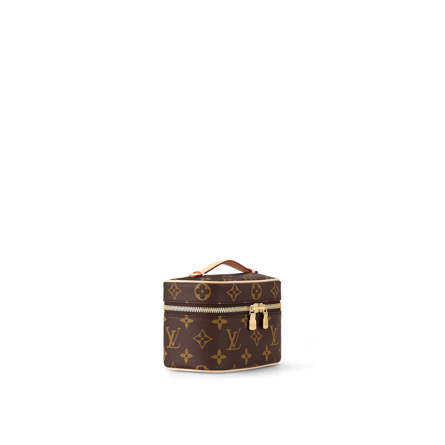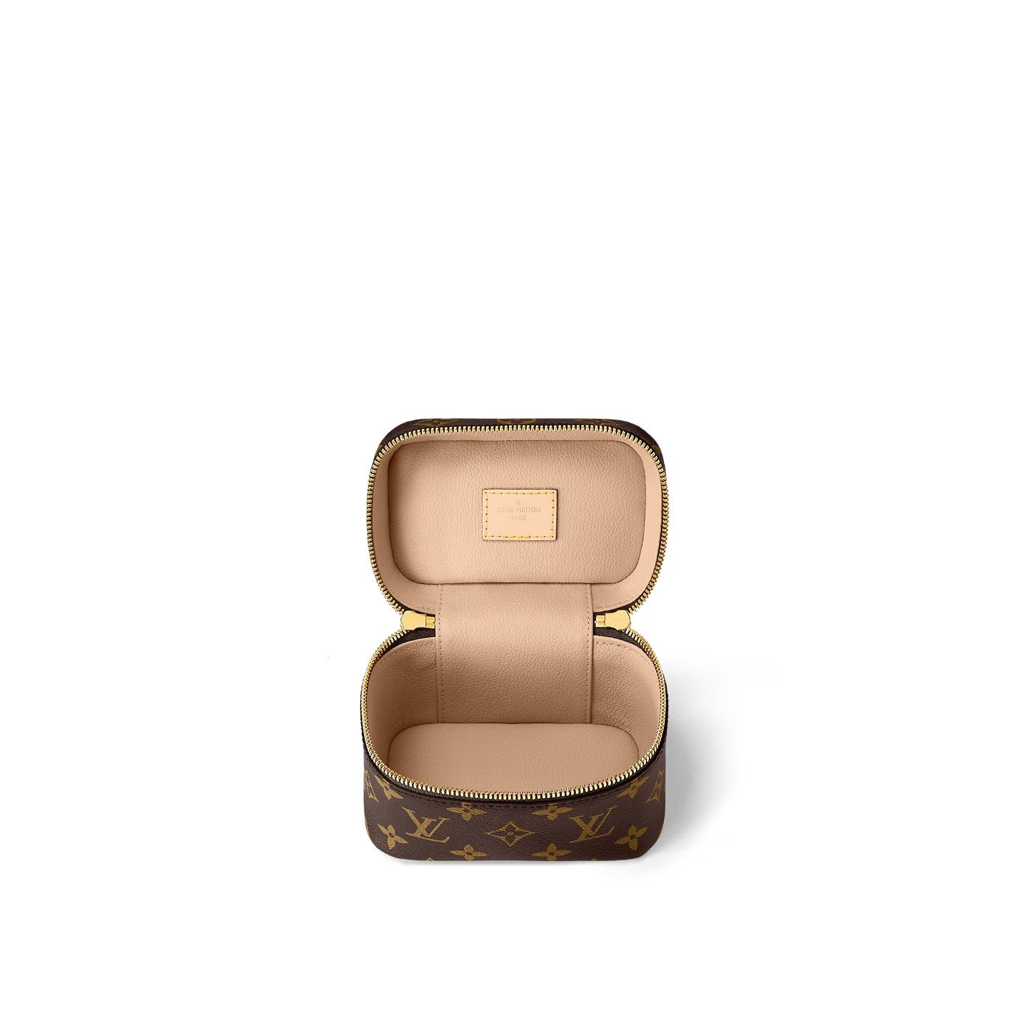 Small and surprisingly roomy, the Nice Nano vanity case can be used to store beauty essentials like nail polish or lipstick in a bathroom, or used as a bag inside a bag to keep small items organised. Fashioned from Monogram canvas with a top handle that flattens for easy packing, it easily fits into even tight spaces.