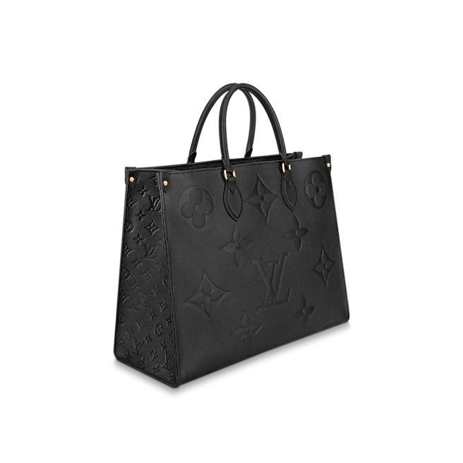 The stylishly oversized OnTheGo GM tote goes from workday to weekend without missing a beat. The bagâs square shape affords plenty of room for stowing office files and a laptop. For the first time, this model is offered in Monogram Empreinte Giant, a supple embossed leather. Versatile, it can be carried by hand or worn over the shoulder on its two long straps.