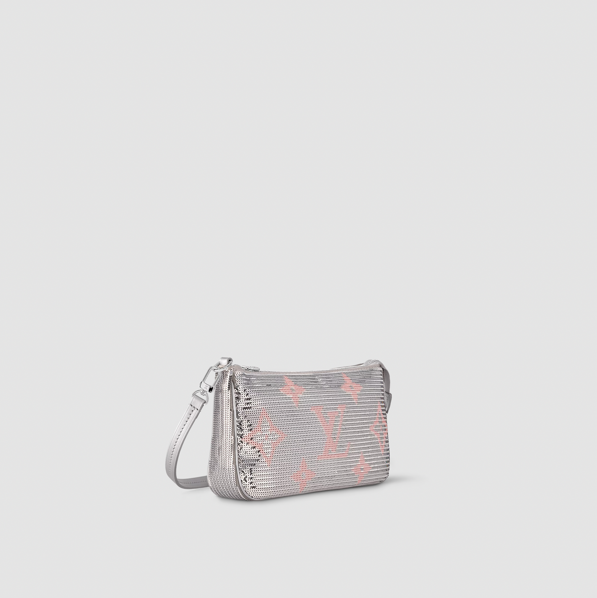 Characteristics: The Maison presents a sparkly edition of the Pochette Accessoires handbag, a shimmering accessory to accompany every festive look, day or night. This covetable piece gives a glamorous 2000s-era vibe: Entirely embroidered with sequins on a satin base, it features a bicolor mix that reveals a Giant Monogram motif â an alluring signature.