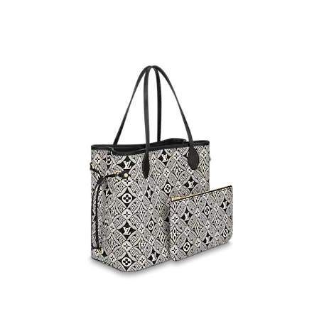 For Winter 2020, the House’s classic Neverfull MM tote is made from Nicolas Ghesquièreâs new signature textile: a modern pattern featuring many of the Houseâs symbols. Inspired by wallpapers from the 1960s, Monogram Flowers and LV Initials are combined with 1854s, the year Louis Vuitton started his company, to create a pattern with a neo-vintage feel.