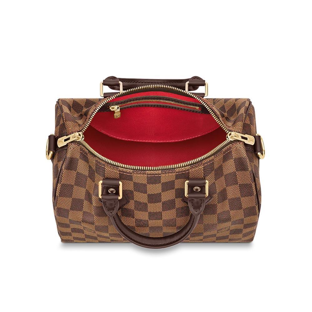 The Speedy Bandoulière 25 in graphic Damier Ebène canvas is an ideal city bag for every day. Originally created for travellers in the 1930s â the name refers to the eraâs rapid transit â every feature of the Speedyâs design is iconic, from its unmistakable shape to the rolled leather handles, engraved padlock and detachable strap.