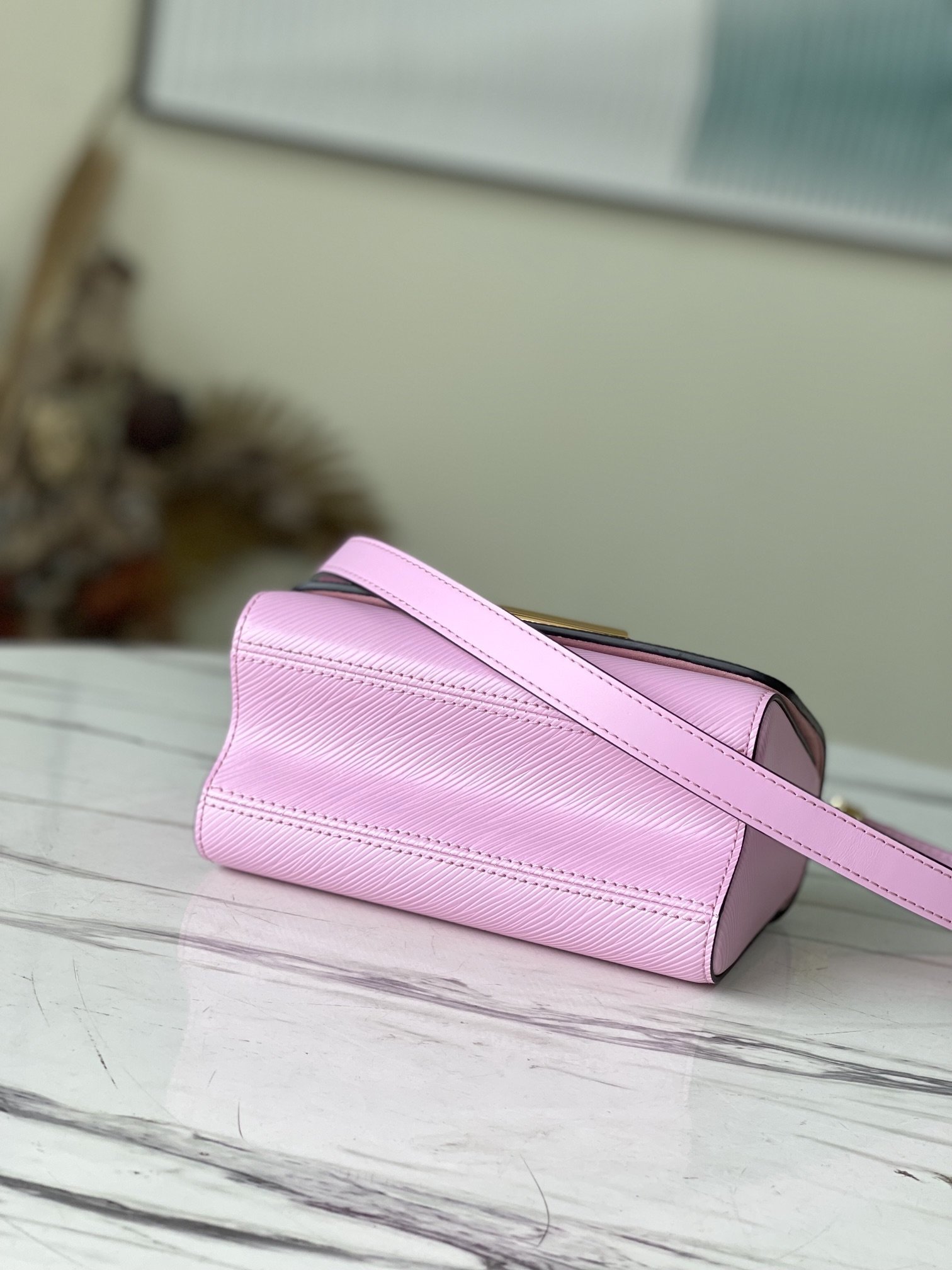 The Twist PM handbag is fashioned from Epi grained in a feminine colorway. In addition to its emblematic LV Twist lock, the bag features a miniature enamel Monogram Flower, fashioned by hand, on the gold-color chain. The chain can be used as a decorative accessory or attached to the shoulder strap for more carrying options.