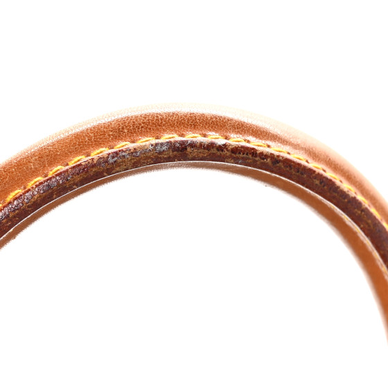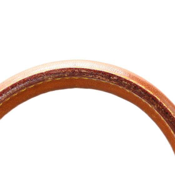 Handle: Edge wear, scuffs, patina of vachetta, liquid marks
