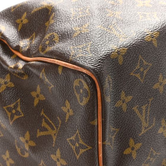 Handle: Edge wear, scuffs, patina of vachetta, liquid marks