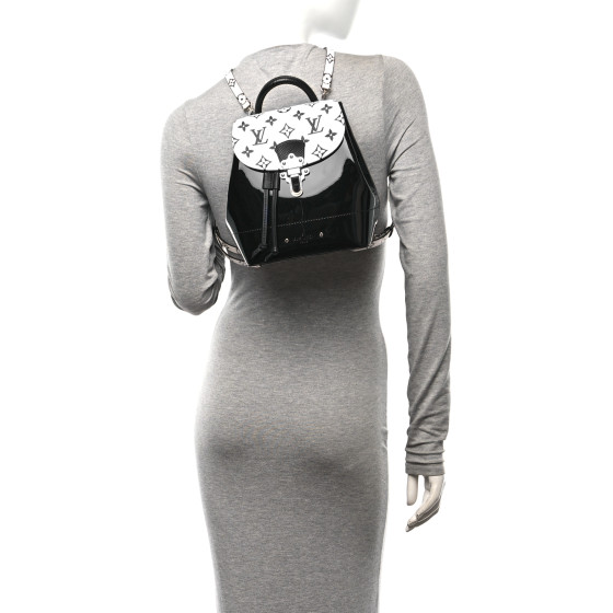 This is an authentic LOUIS VUITTON Vernis Monogram Hot Springs Backpack in Black and White. This backpack is crafted of glossy black patent leather, with a classic monogram coated canvas base and matching crossover flap. The bag features a black rolled leather top handle, and adjustable monogram coated canvas shoulder straps, with silver hardware. The bag opens to a black microfiber interior with a patch pocket.