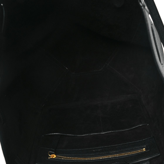 This is an authentic CELINE Soft Grained Calfskin Small Belt Cabas Phantom in Black. This structured tote is crafted of finely-grained calfskin leather in black and features tall leather shoulder straps. The top is open to a black suede interior with hanging zipper and patch pockets.